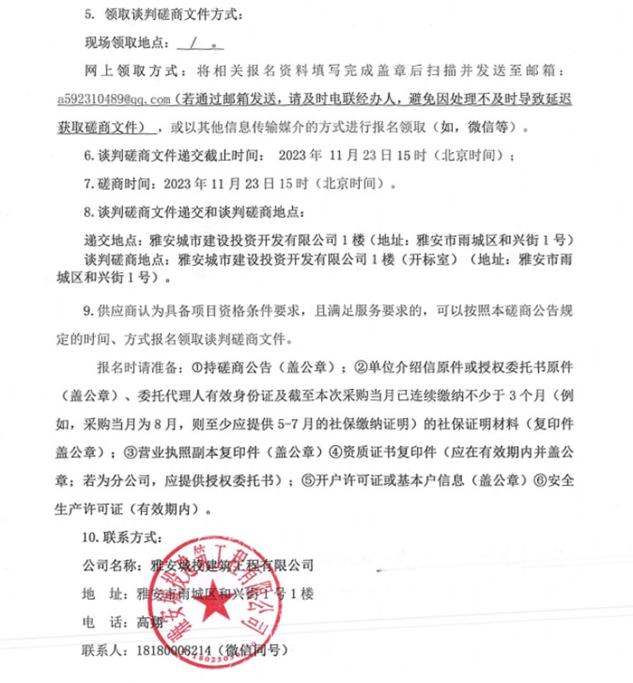 寶興靈關(guān)保障性租賃住房建設項目(二期)吊籃租賃談判磋商公告